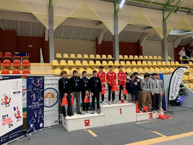 Au Sabre Homme M17 en équipe nationale N2, médaille de bronze pour l’équipe de Vannes : Ulysse LE GAC BRIAND, Esteban POUAHER, Arthur SOREL et Paul LAFAGE